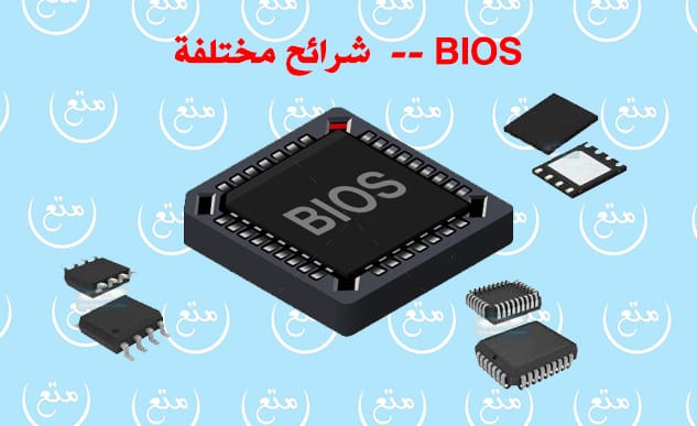 نظام مراقبة إخال البيانات وإخراجها BIOS هو عبارة عن شريحة: يتم فيها تخزين  نظام تشغيل بدائي وبيسط وهو أول ما يظهر لك عند تشغيل الحاسوب.