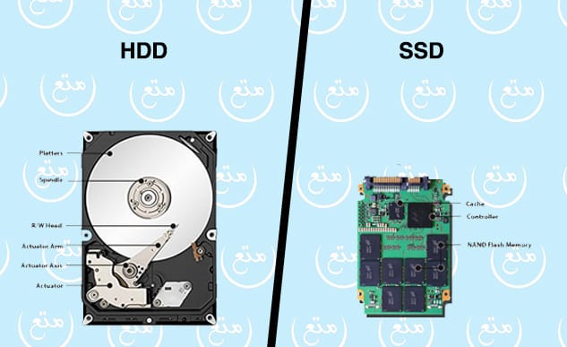 الفرق بين HDD و SSD هو أن SSD غالي الثمن ولكن سرعته على كتابة وقراءة البيانات كبيرة. و الآخر HDD   فهو رخيص الثمن  لكن يمكنك شرائه يثمن رخيص وفيه مساحات تخزبن كبيرة جدا تصل إلى 2 TB (تيرا بايت).